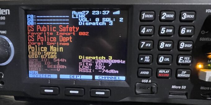 For those radio buffs, you must be curious how do we do it. For the Coral Springs Police and fire Department dispatch we use a Uniden SRS200 scanner.